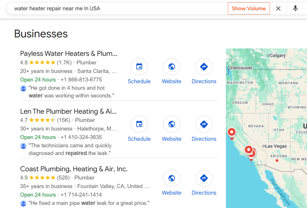 - Example: A plumber in USA/Canada/UK offering “24/7 emergency services” prominently on the homepage will attract late-night customers searching for immediate help.