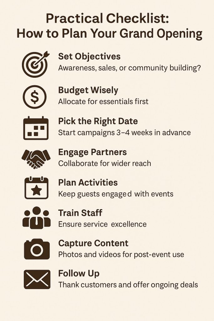 Planning a grand opening can feel overwhelming, but breaking it down into clear steps makes the process manageable and effective. A well-structured checklist ensures you don’t overlook critical details, from setting clear goals to preparing your staff for the big day. By following a step-by-step approach, you not only create a smoother event but also reduce stress and maximize your chances of success. Think of this checklist as a roadmap: it guides you through preparation, execution, and follow-up, ensuring that your launch is both exciting and strategically sound.